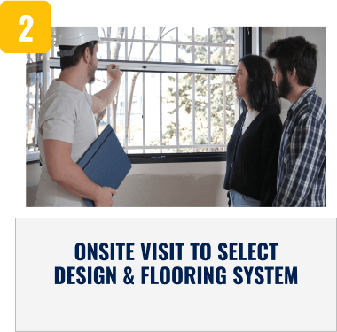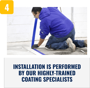 A: On average, depending on the flooring system, you can walk on the coating by day three after installation, and you can return items and drive your car back onto it by day four.